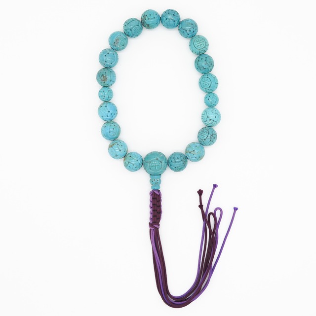 彫りの入ったトルコ石を使用した、一輪の念珠(数珠)です。 浄土真宗の御門徒様の正式な念珠です。 【商品詳細】 一輪念珠 トルコ石(彫入り) 共仕立 紐房
