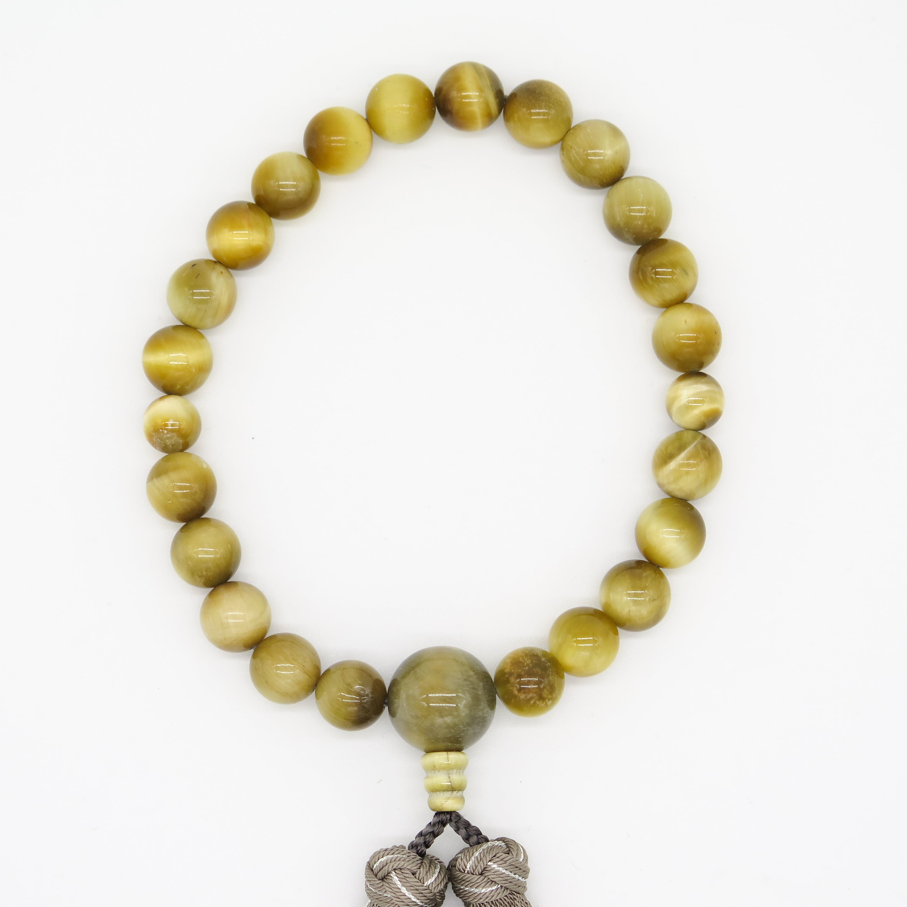 念珠の定番品である「虎目石」よりも明るい「金虎目石」を使用した念珠(数珠)です。