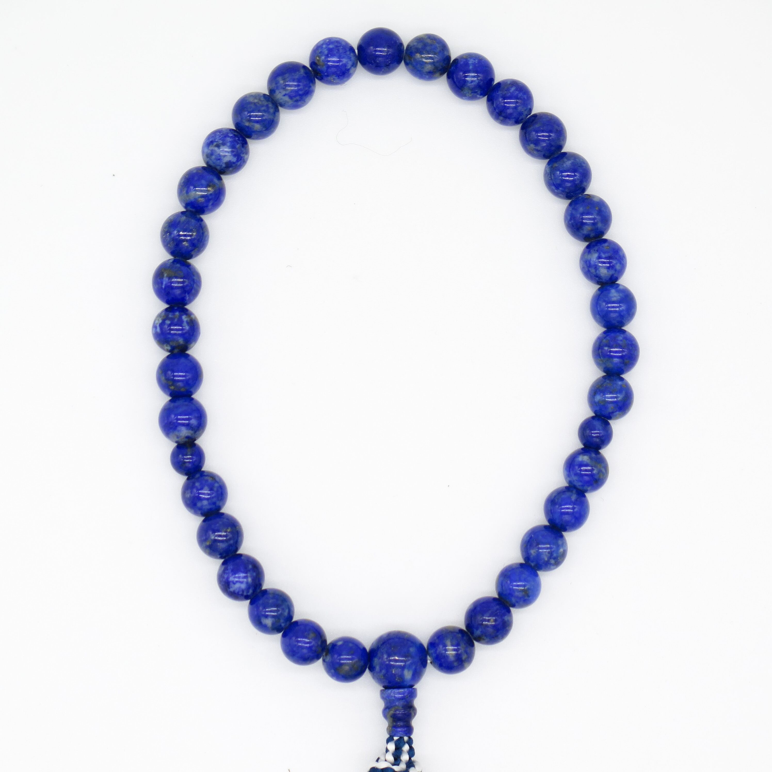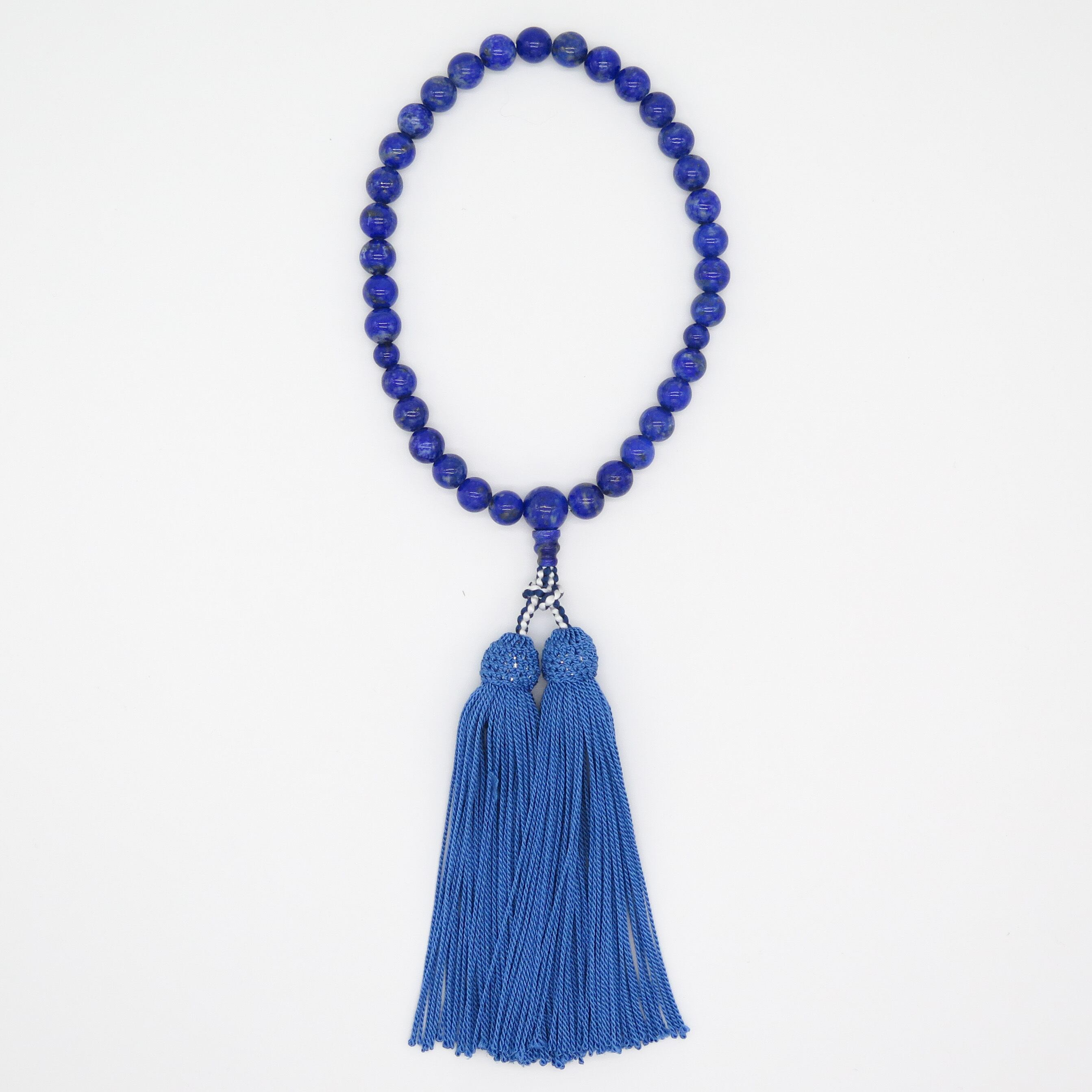 今回当店で入荷した念珠は、深いブルーが特徴のラピスラズリと鮮やかなブルーの房を合わせた念珠です。