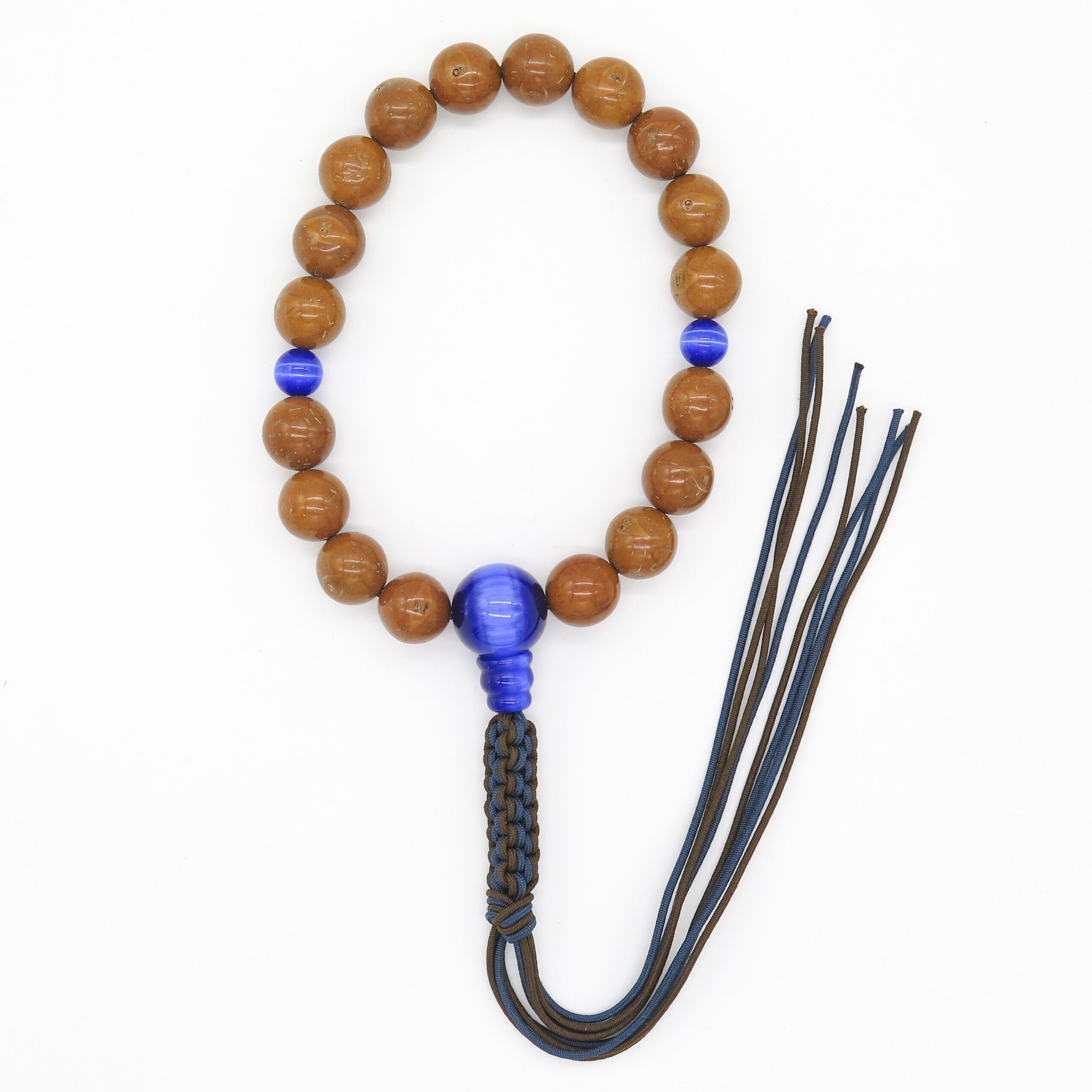 一輪念珠 鳳眼菩提樹 ブルーニューキャッツアイ仕立 紐房8本 (浄土真宗・男性本式念珠)
